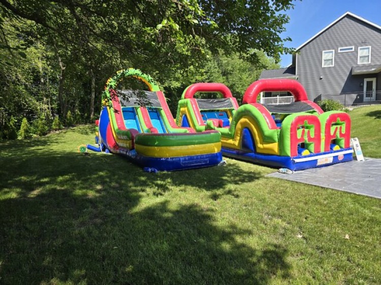 Get ready for endless fun and excitement with our 96ft U Turn Obstacle Course! Perfect for both kids and adults, this massive inflatable challenge features a unique U-turn design, allowing participants to enter and exit from the same side, making it easy to keep track of winners and those who complete the course. Ideal for church gatherings, community events, school functions, corporate events, and backyard parties, the 96ft U Turn Obstacle Course is a crowd-pleaser. With its combination of climbing walls, slides, and various obstacles, it promises hours of entertainment and physical activity, ensuring your event is memorable and thrilling!