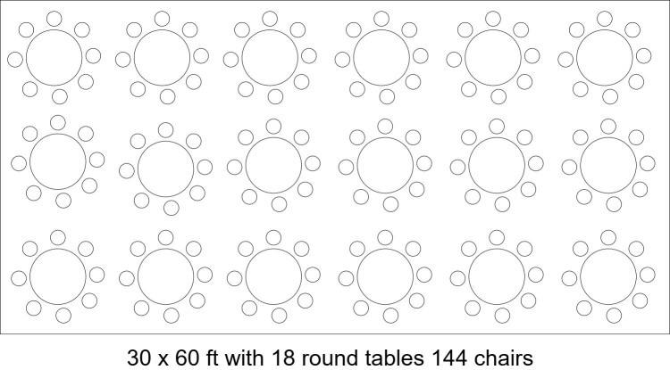 • 18 x 60in round tables with 144 chairs