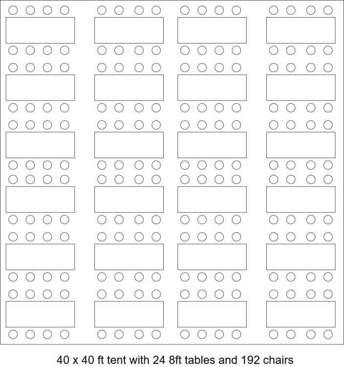 Transform your next event into an unforgettable outdoor extravaganza with our Expansive Sectional Frame Tent! This grand shelter spans a generous 40 feet by 40 feet, soaring 17 feet high to create a vast, inviting space that's ideal for lively weddings, festive birthdays, corporate picnics, or community festivals. Whether you're hosting a cozy sit-down dinner for up to 133 guests, a bustling buffet for 160, or a standing cocktail mingle for 320, it offers flexible room to dance, dine, and celebrate under protective cover from sun or sprinkles.